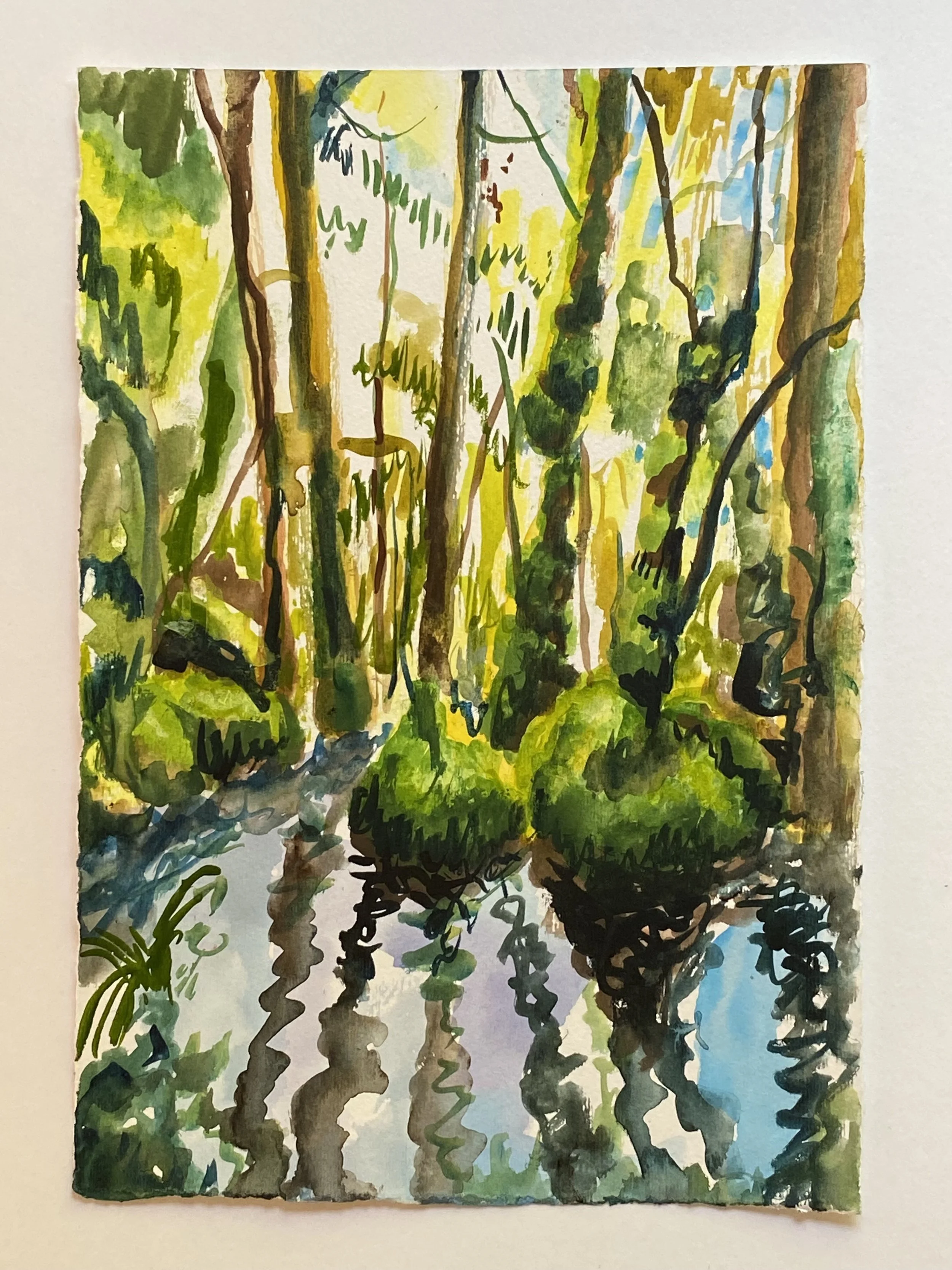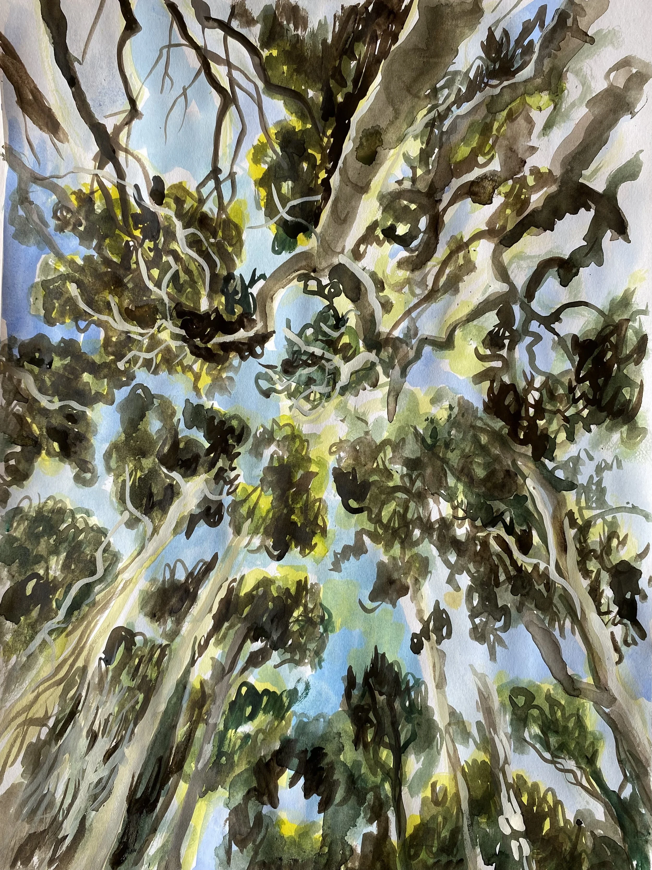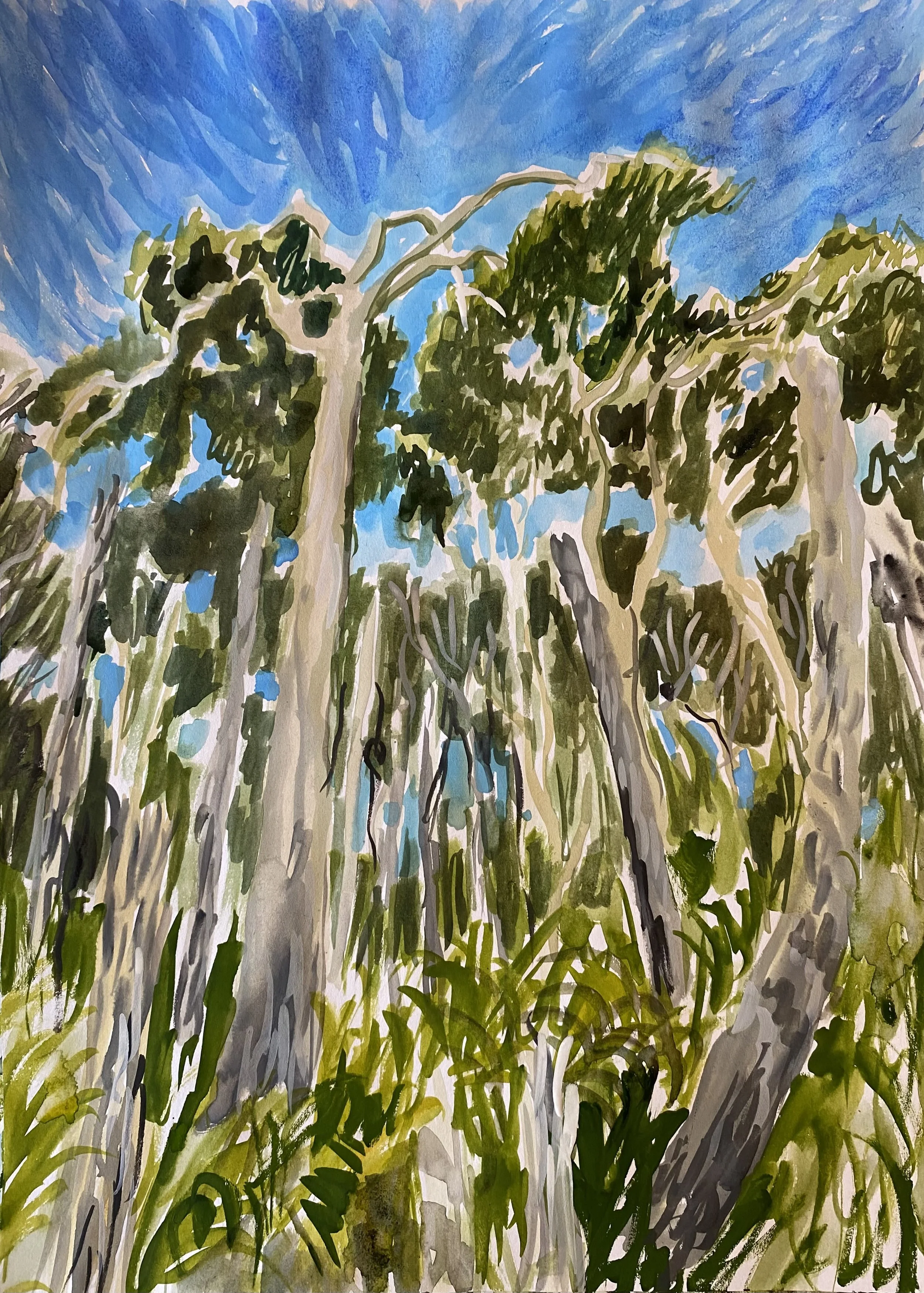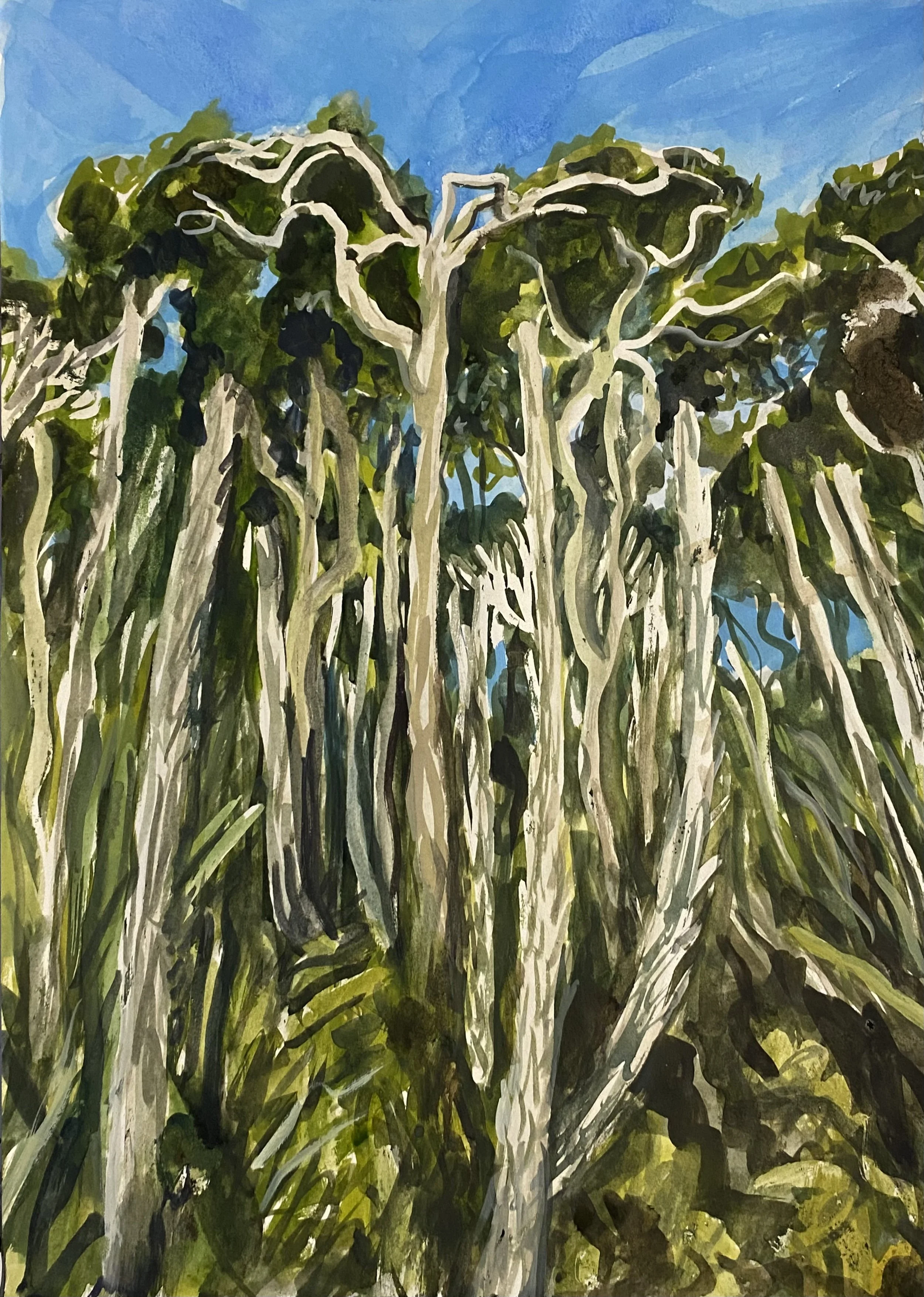 “Kahikatea Study” Liz Abbott 2024 Gouache on paper 175 x 250mm