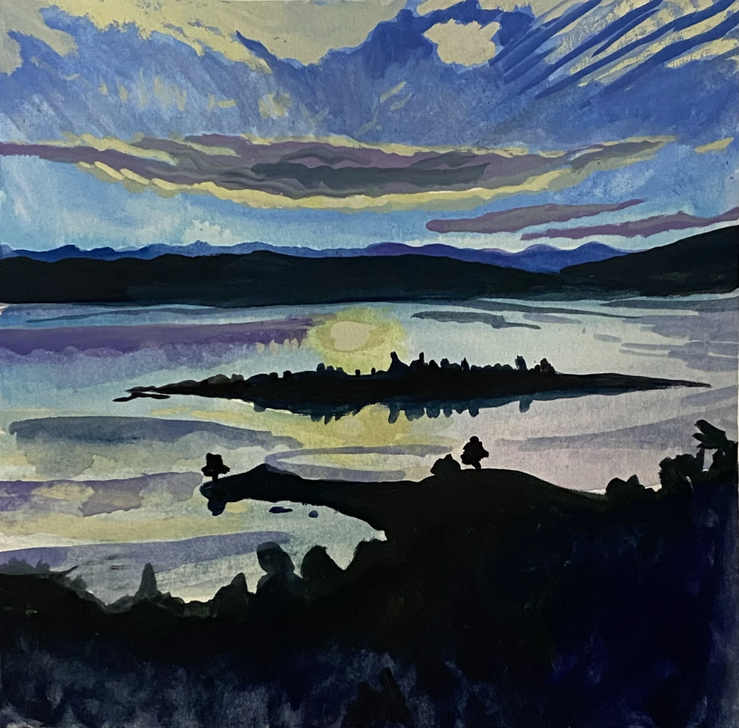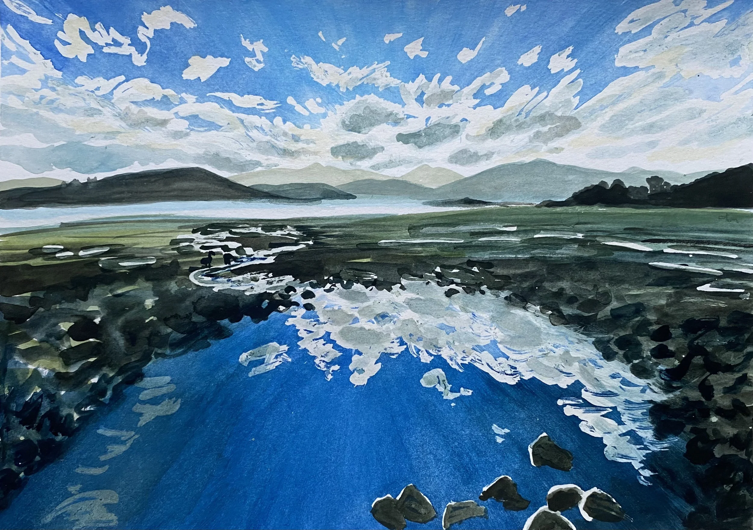 "Aurora near Portobello" Liz Abbott 2024 Pen and watercolour on acid free paper 185 x 132mm