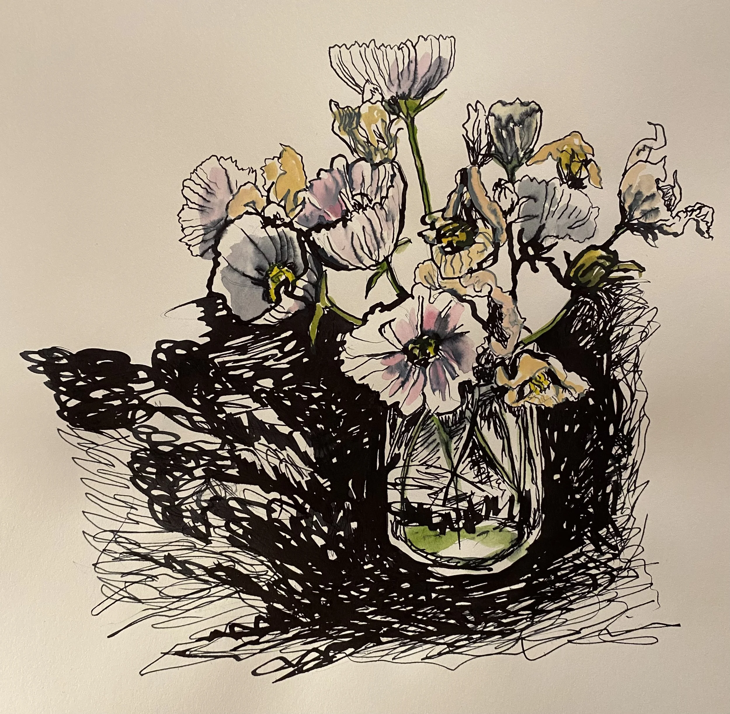 “Large Lilies” Liz Abbott 2019 Ballpoint pen on paper