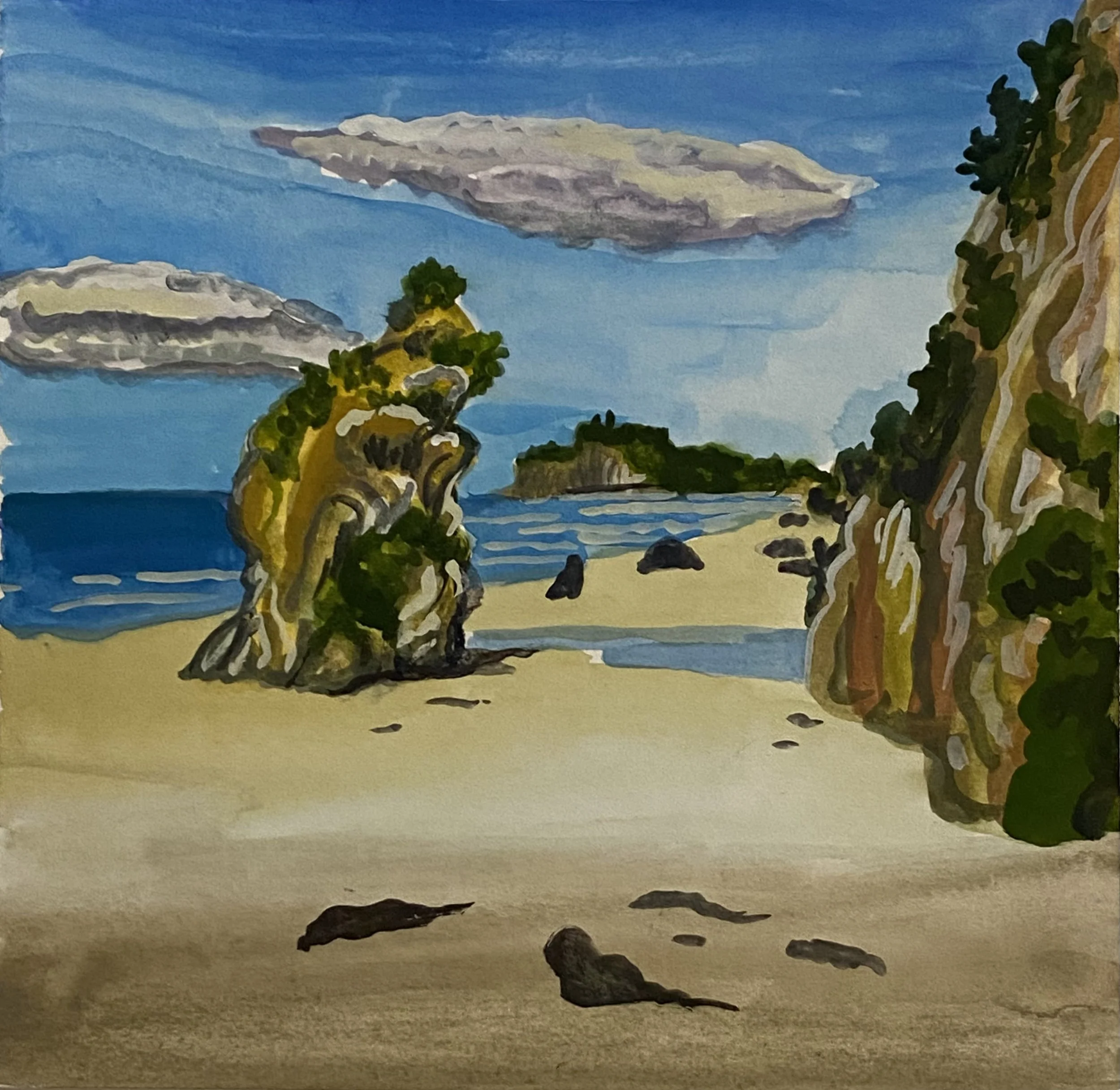 “Rimu Study, Munro Beach V I” Liz Abbott 2025 Gouache on paper 300 x 420mm