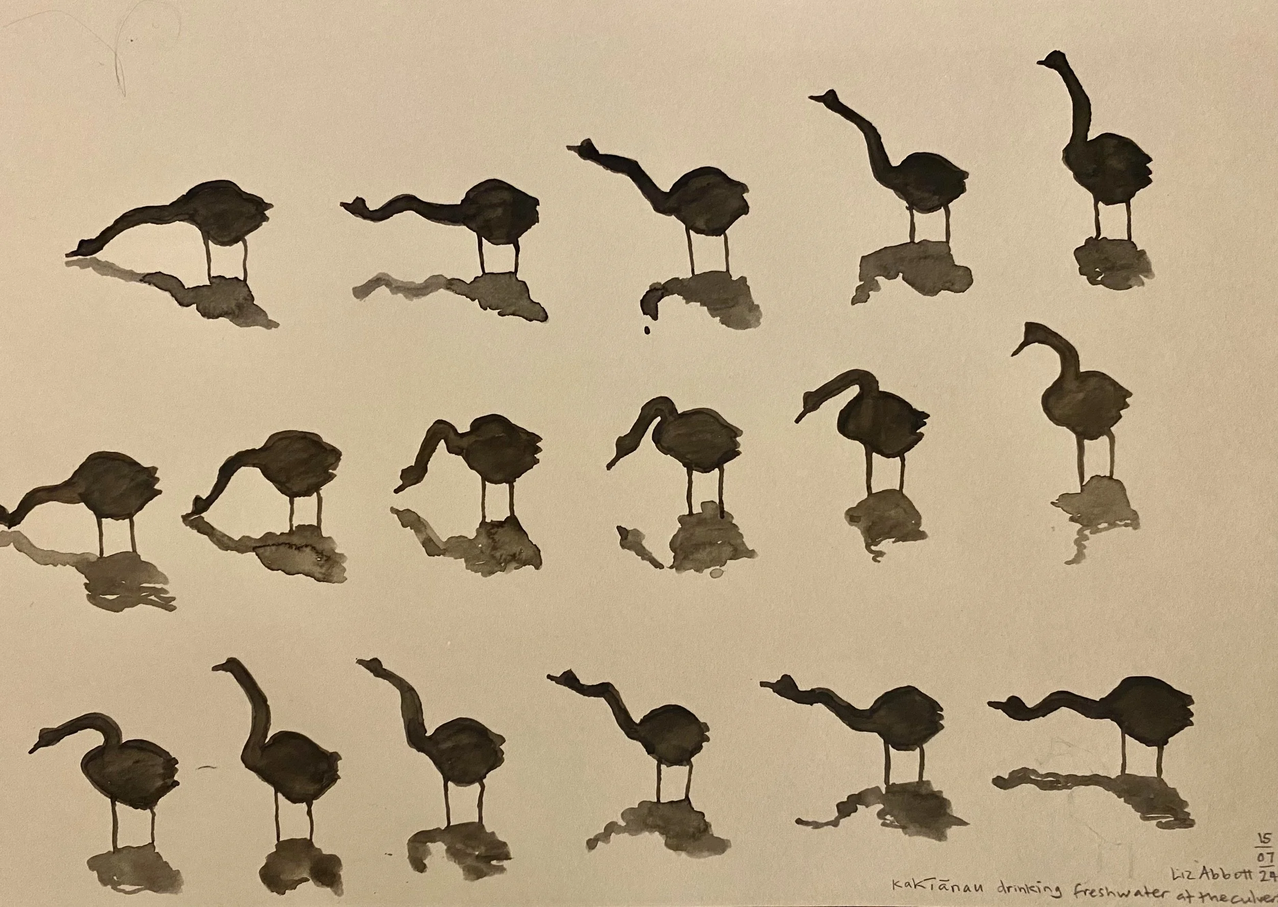 "Tōrea pango family" Liz Abbott 2024 Liz Abbott 2024 Pastel on acid free paper 400 x 300mm