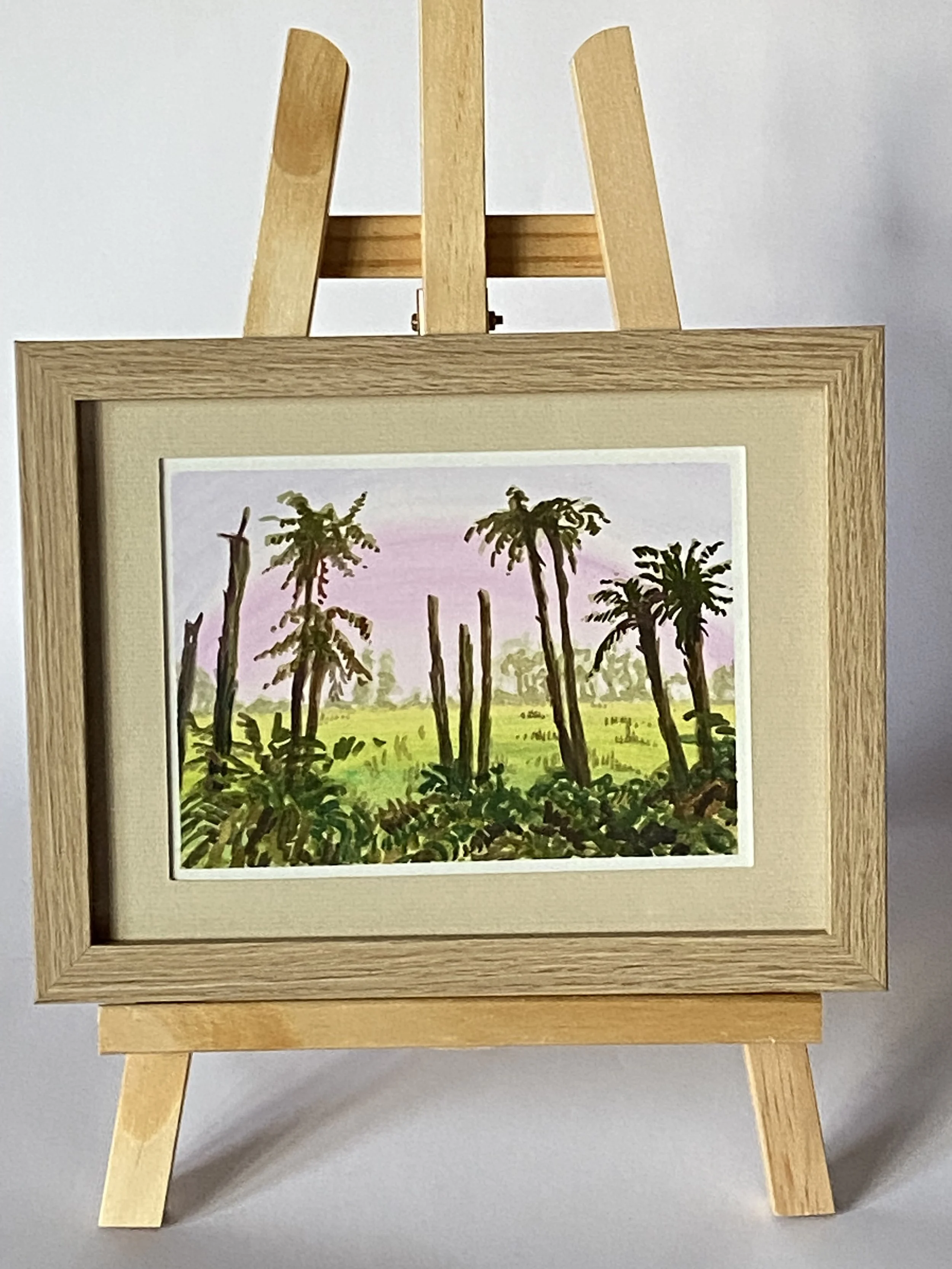 Framed size 225 × 174mm. Frame comes with a fold out stand on the back. (Display easel not included.) Please note the artwork was photographed behind glass resulting in a slightly blurred image.